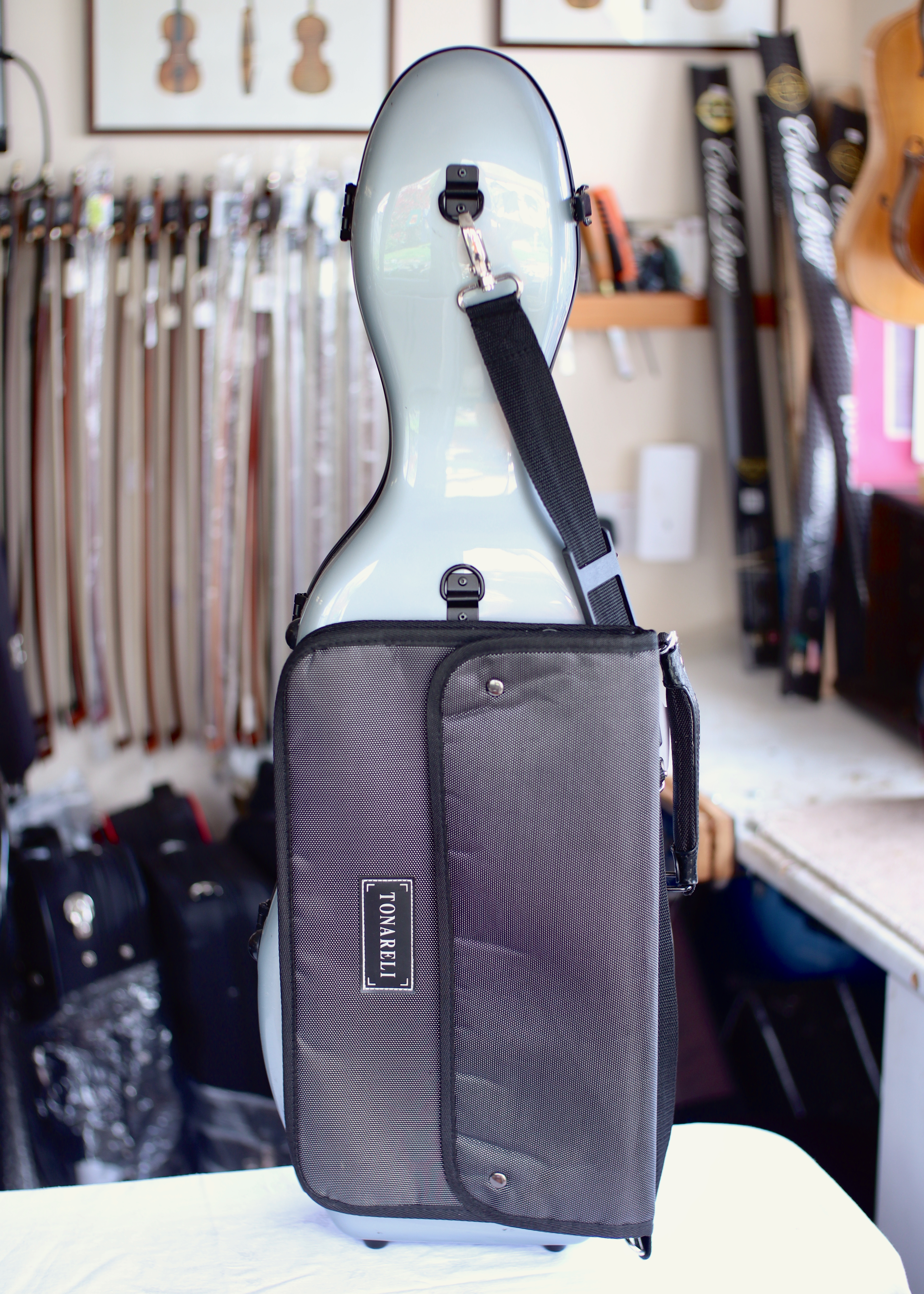 With Tonareli shaped violin case and baroque bow.